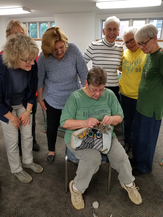 ![]() Susan Vilagi teaches us the Herrignbone stitch for trimming hooked pillows